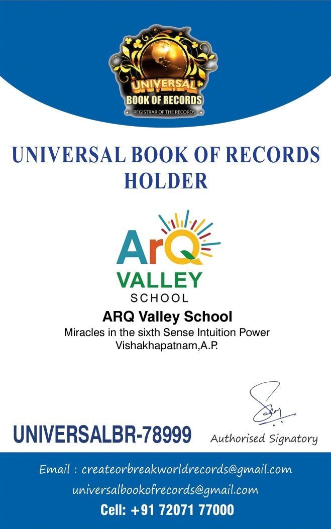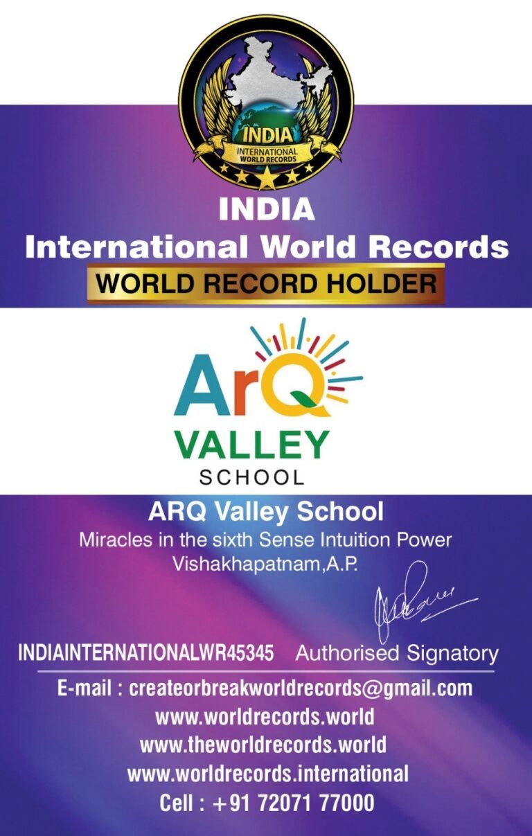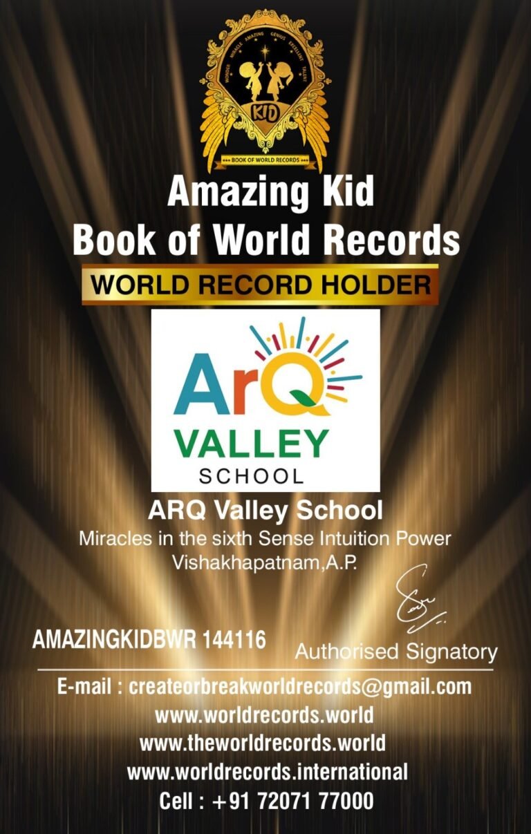 ARQ Valley School Enters World Records – Sixth Sense Wonders Announced by K.V. Ramana Rao